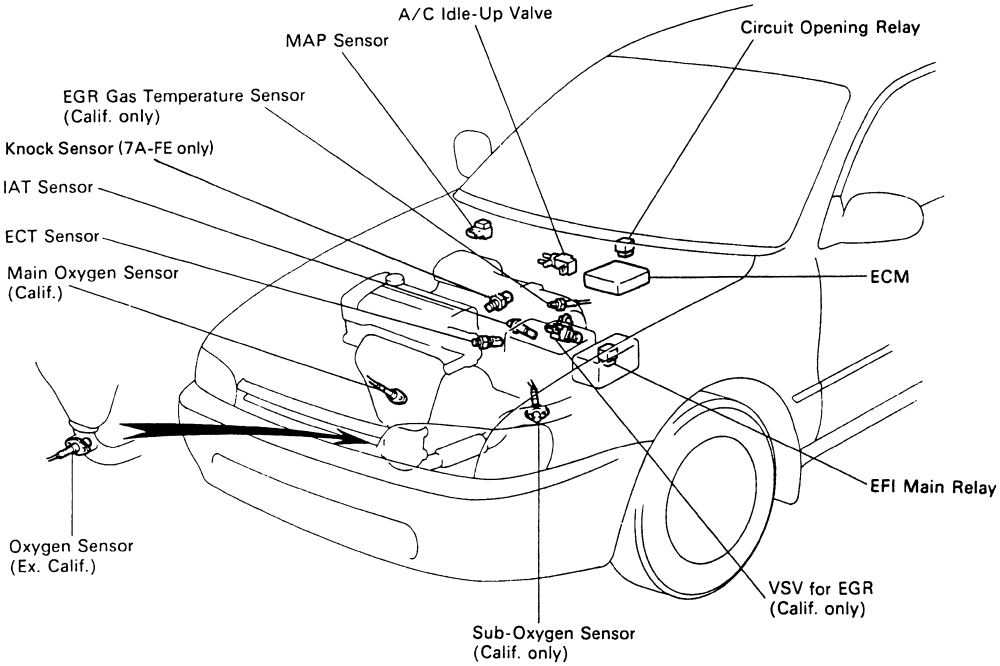 Fig. 2: Electronic engine components-4A-GE engine